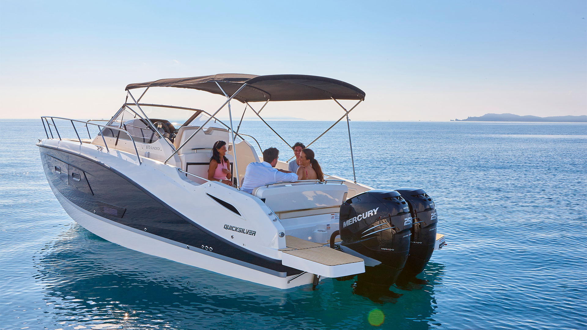 Náutica Palamós incorporara próximamente a su exposición la Quicksilver Activ 875 Sundeck , equipada con 2 motores Mercury de 250 CV cada uno. Homologación inferior a 8 metros.