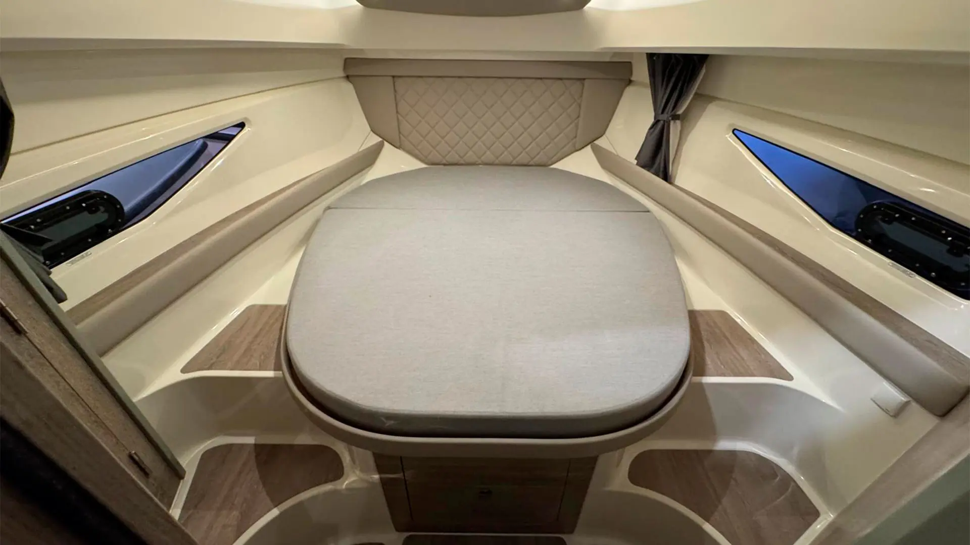 Pack Cruise: cortina de escotilla cenital, escotilla cenital, ducha de bañera, iluminación de bañera, solárium de proa y molinete eléctrico.
