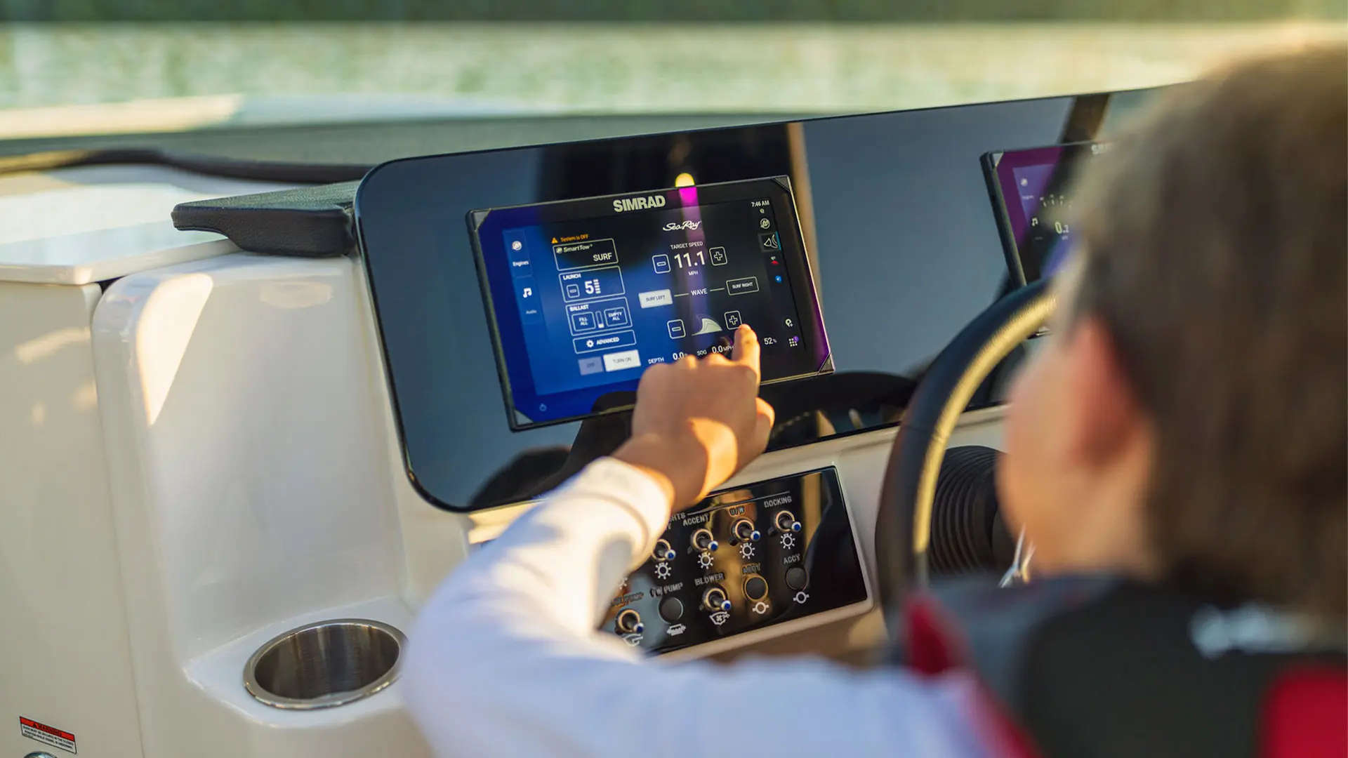 El puesto de mando incorpora sistemas intuitivos y pantallas digitales, incluyendo opciones como la tecnología Simrad táctil para una navegación precisa y sencilla. El sistema de surf integrado permite ajustar la forma y el volumen de la ola, adaptándola al nivel y estilo de cada usuario. Los acabados premium y el sistema de audio de calidad proporcionan una experiencia agradable en todo momento.