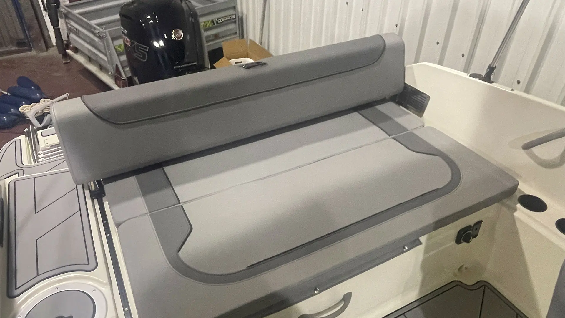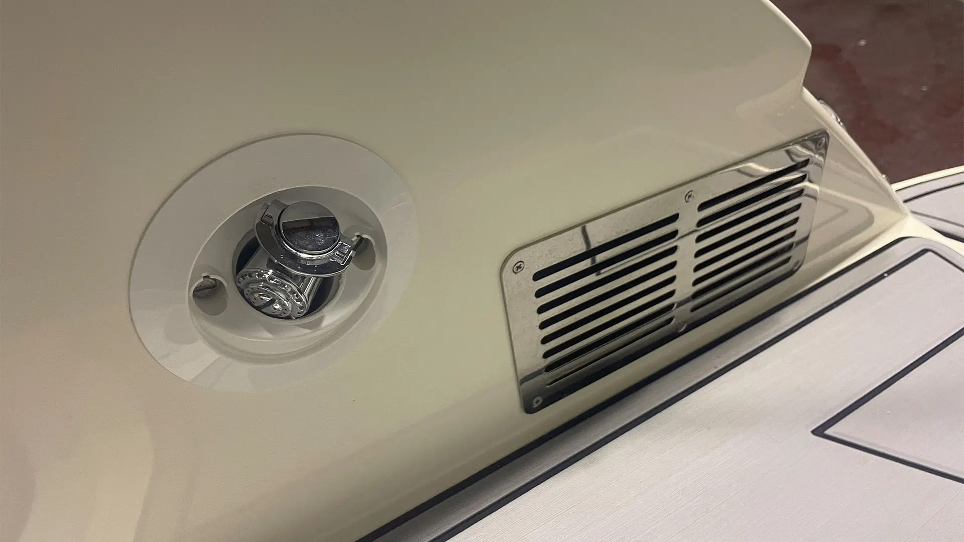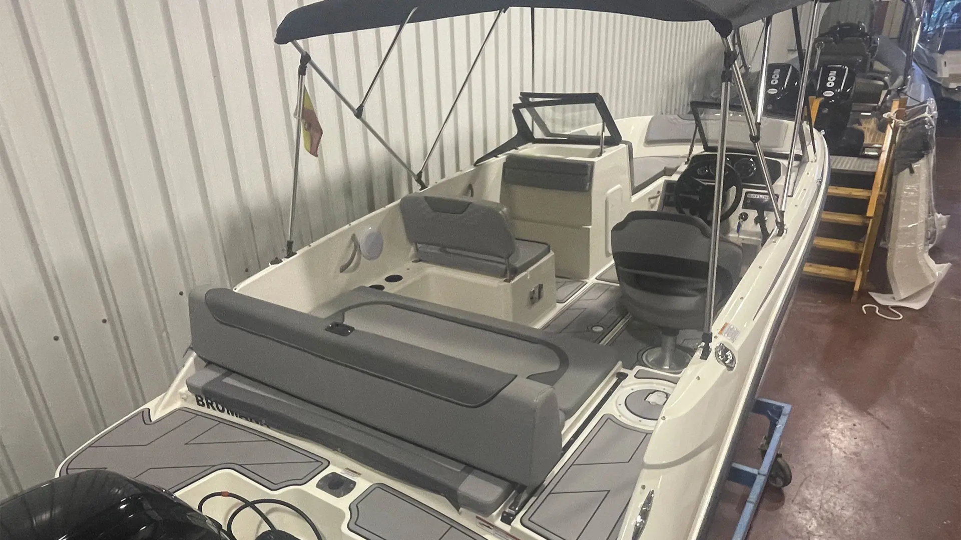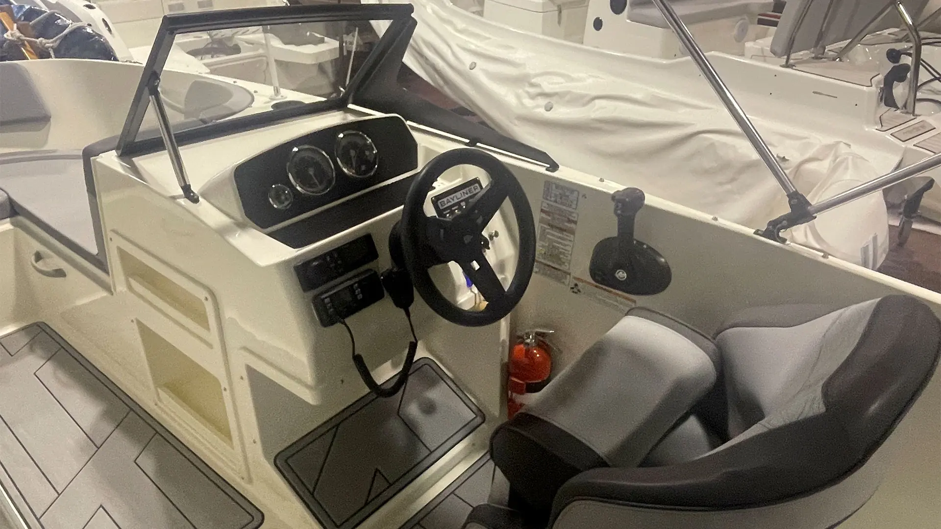 Mástil de esquí, colchoneta hueco proa, mesa de bañera, suelo en sucedáneo de teca blanda Gatorsteep color gris, parabrisas completo con apertura central, dirección hidráulica, equipo estéreo FUSION, radio VHF, toldo de sol bimini, lona de fondeo, ducha en popa.