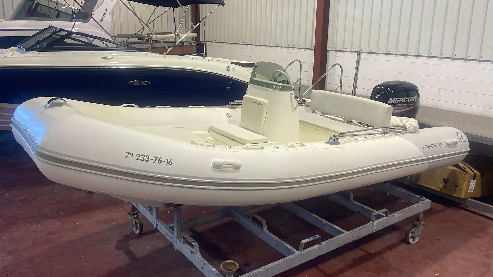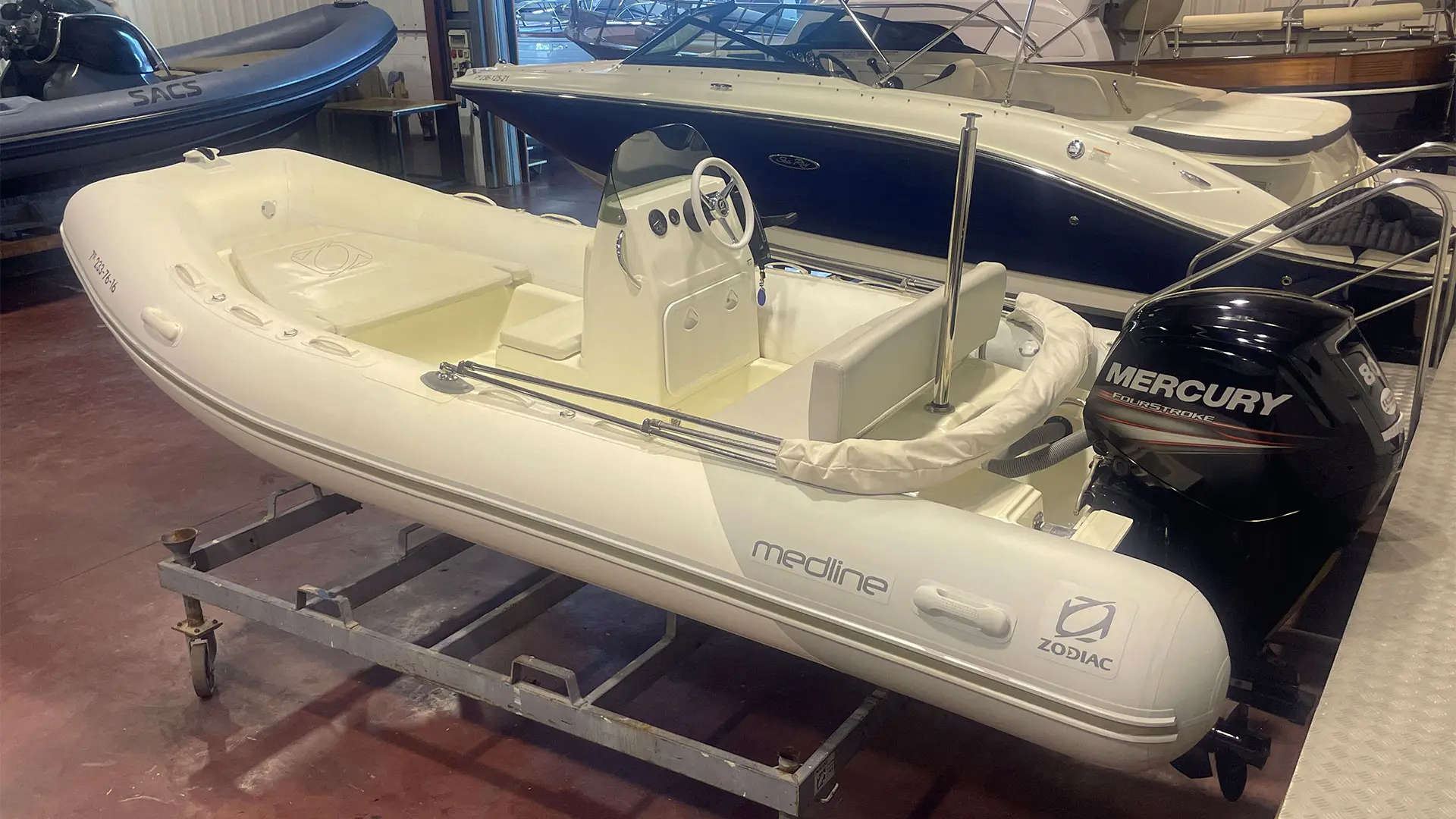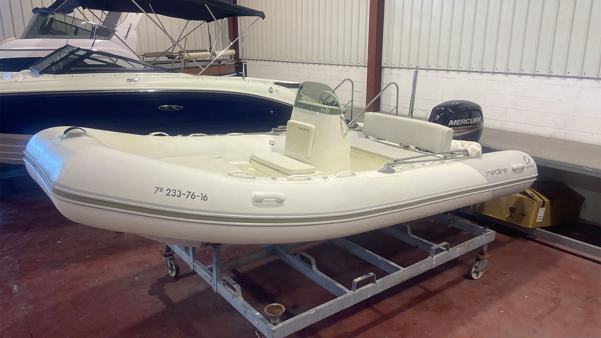 Náutica Palamós incorpora a su exposición la neumática semirrígida Zodiac Medline 500, un barco de segunda mano en buen estado, equipado con motor fueraborda Mercury de 80 CV. Apta para licencia de navegación.