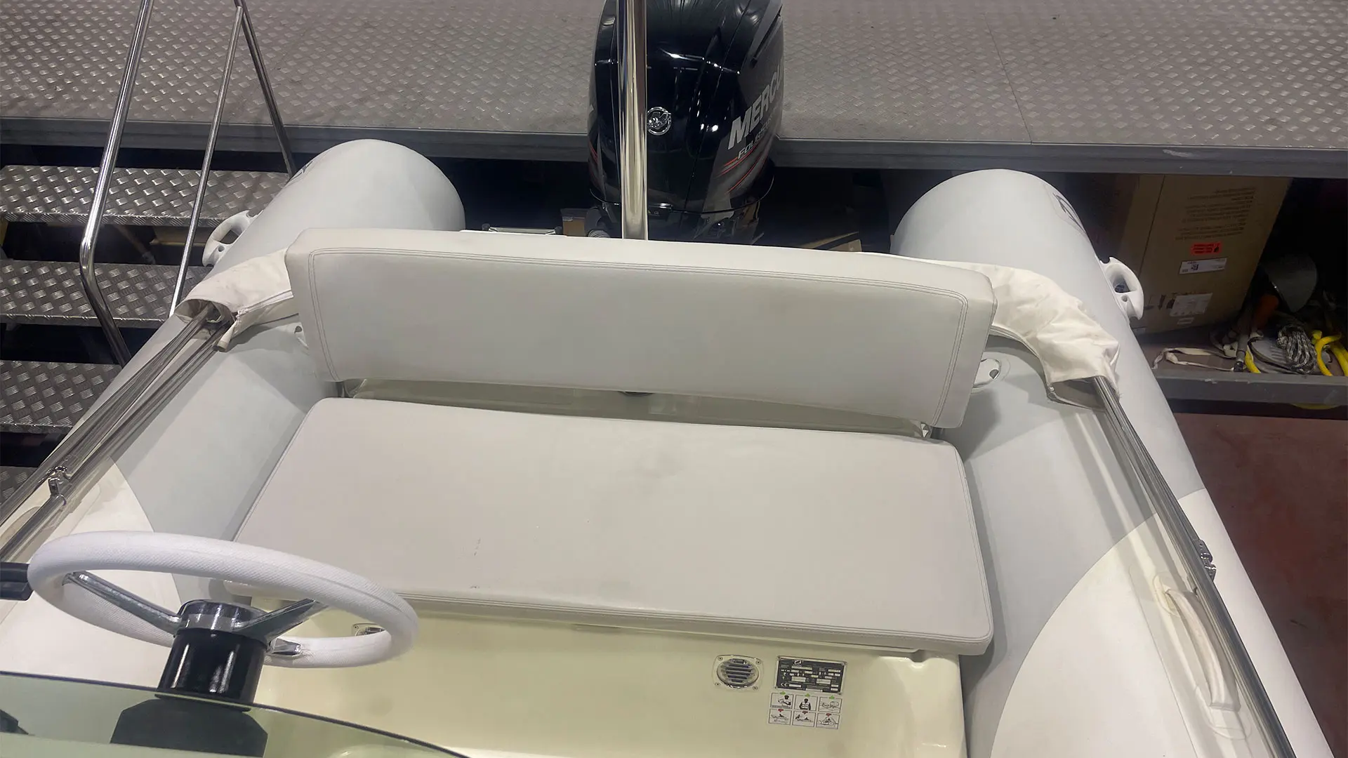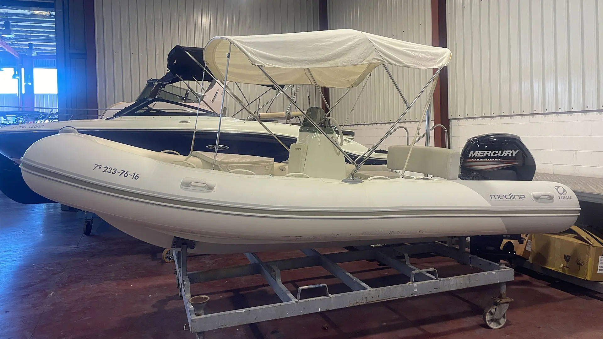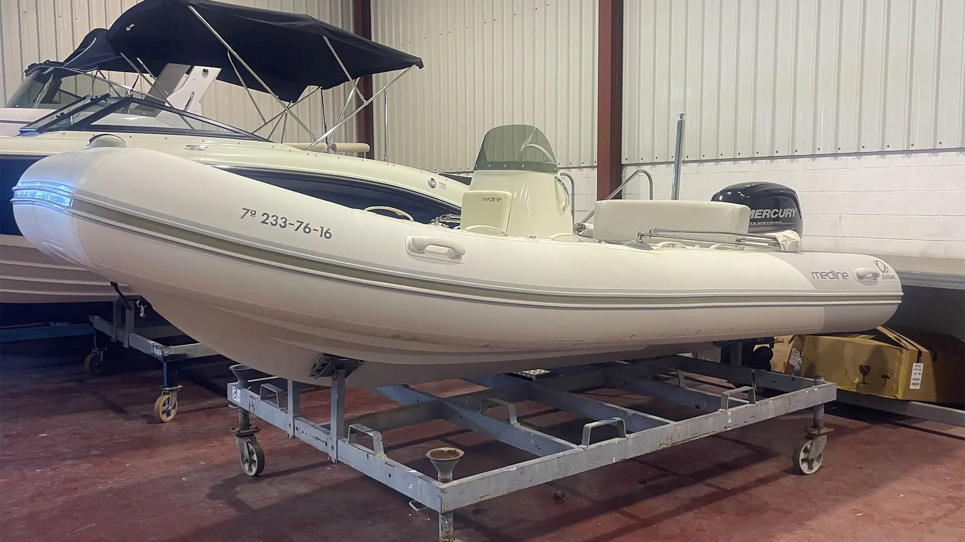 Náutica Palamós incorpora a su exposición la neumática semirrígida Zodiac Medline 500, un barco de segunda mano en buen estado, equipado con motor fueraborda Mercury de 80 CV. Apta para licencia de navegación.